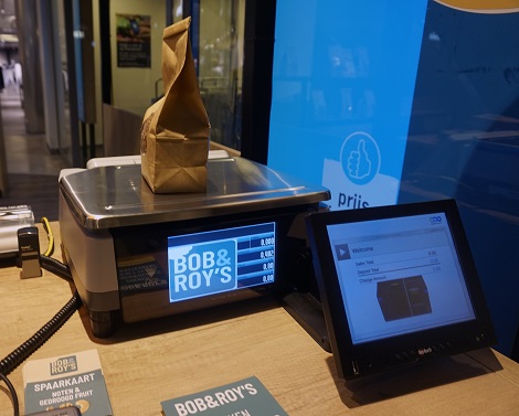 The shops have a very market-like feel to it. They are always in very strategic places with a lot of passers-by. The concept is to give the customers a very fast shopping experience without really going into a shop. The design of the shops is modern and open. Every shop holds a large assortment of high quality nuts and dried fruit. All the goods are in bulk, so the scale is essential. The customer choose a SM5300B, because it’s small, flexible and reliable. Buying nuts and dried fruit is often impulsive that’s why it’s important to offer the customer as much payment options as possible.