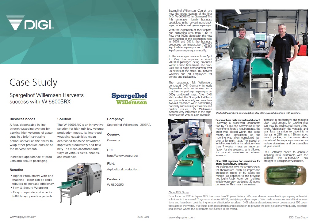 Spargelhof Willemsen (Zegra), are now the proud owners of the first DIGI W-5600SRX in Germany! The 4th generation family business specializes in the harvesting and packaging of white and green asparagus.