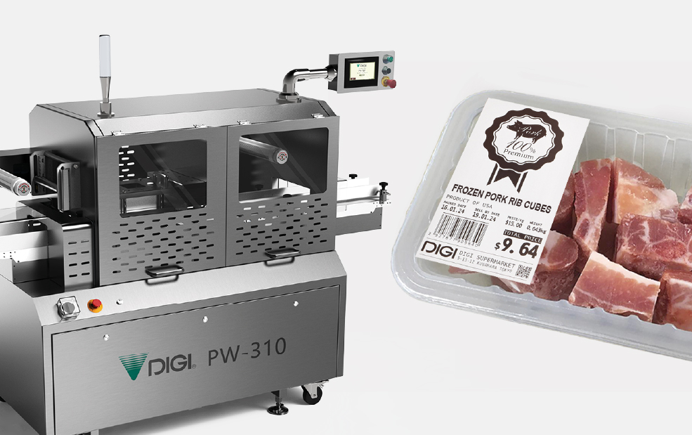 PW-5600LL MAP/Skin Packaging Machine with Integrated Automatic Weigh-Labeler