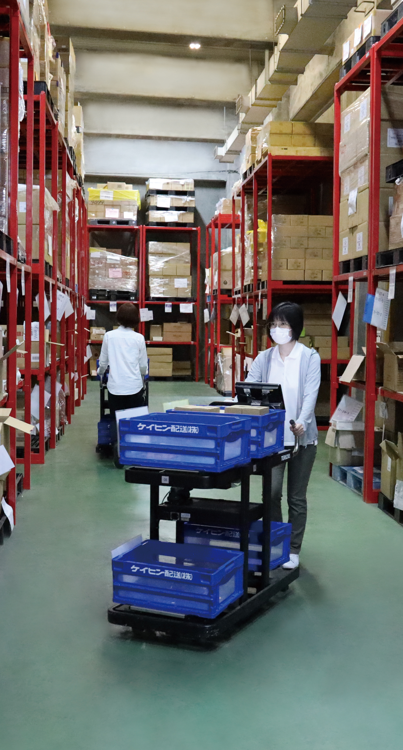 Keihin Distribution Co., Ltd. est un acteur de la logistique depuis plus de 40 ans, traitant principalement des produits de petite quantité et de grande variété. L'entreprise avait son activité principalement axée dans l'exploitation de centres de distribution et les services de livraison à domicile pour les grands magasins. Désormais il opère sur l'offre de services logistiques aux entreprises de vente par correspondance et aux détaillants. Pour améliorer la précision des expéditions pour leurs clients vendant des cosmétiques et des marchandises générales, ils se sont équipés de chariots de prélèvement avec des balances intégrées (AI Picking Carts) et des balances de dimensionnement (SPK).