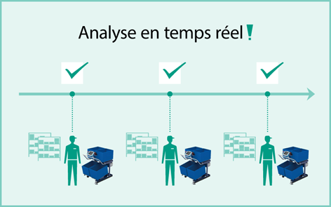 Les informations sur le ramassage sont collectées en temps réel, afin de faciliter l'évaluation de l'état de fonctionnement du chariot et la progression de chaque employé. L'analyse sans papier des historiques de travail permet de réduire les coûts tout en augmentant la productivité.