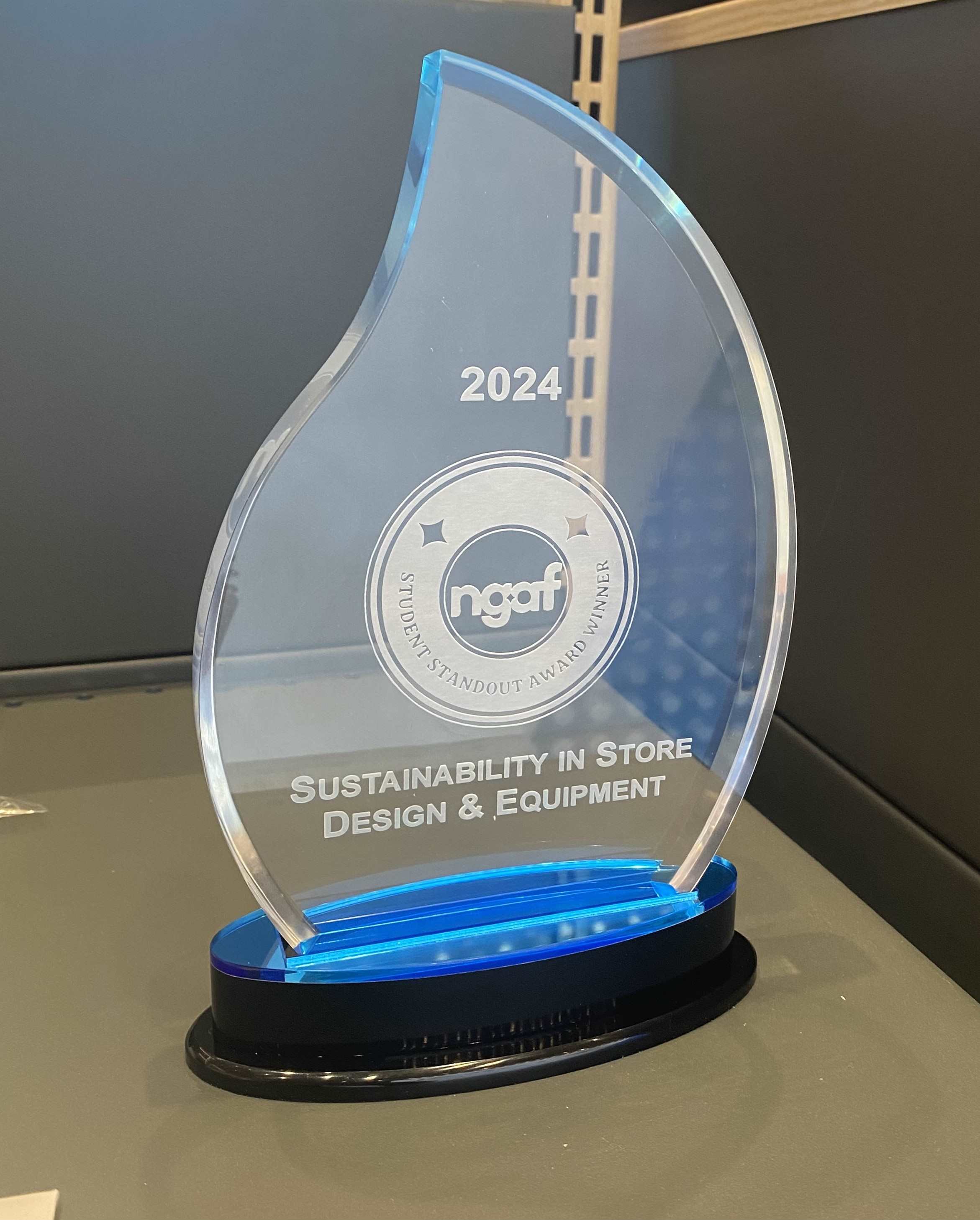 The award honors companies showcasing products and services that contribute to a more sustainable future for the grocery industry. Over two days, students from five different colleges visited exhibitors finding the products and services that are most likely to: