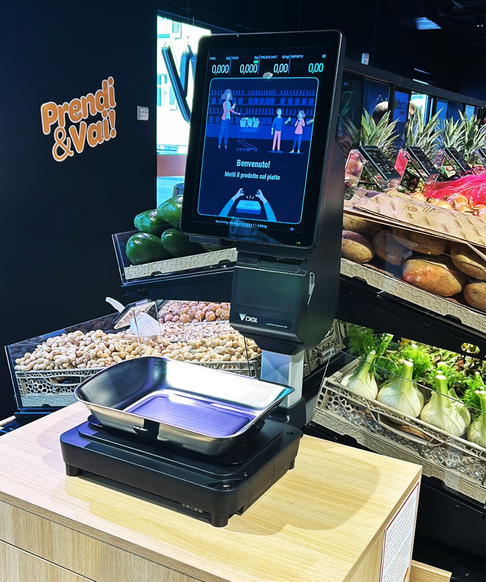 After the client’s confirmation, DIGI worked to ensure a quick and smooth interface with Sensei’s system and soon delivered the final solution for the imminent installation in the Trento store. Upon opening, customers were thrilled by the speed and recognition performance of the scale: simply placing the product on the scale prompts the system to suggest the correct product without needing to input codes, drastically reducing usage time and preventing potential product selection errors. Once the label is printed, data is sent to Sensei’s system in seconds, adding the weighed product to the customer’s virtual cart.