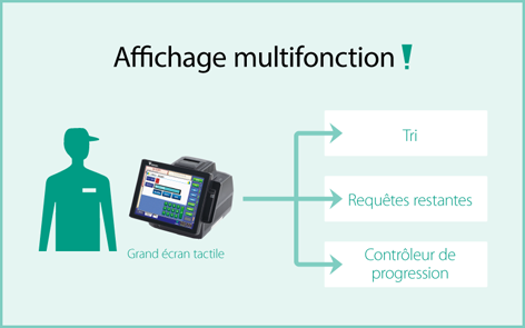 Le terminal de tri MVP-3000 est équipé d'un affichage grand écran et dispose de plusieurs fonctions, il peut être utilisé pour vérifier les quantités restantes, suivre la progression et le tri. Il peut également être utilisé pour conserver l'historique du travail de tri, ce qui aide à réduire le temps d’attente.