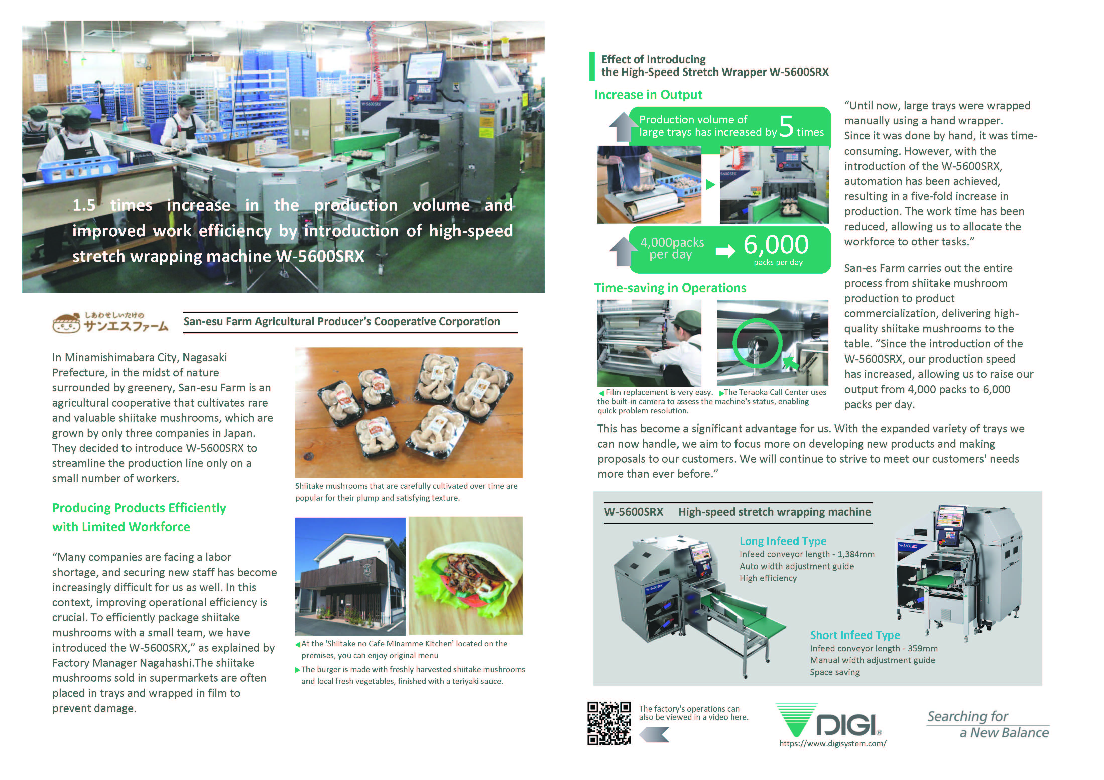 1.5 times increase in the production volume and improved work efficiency by introduction of high-speed stretch wrapping machine W-5600SRX