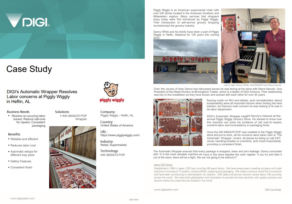 RetailLa soluzione ai problemi di personale di Piggly Wiggly? La confezionatrice automatica DIGI AW-5600AT II!