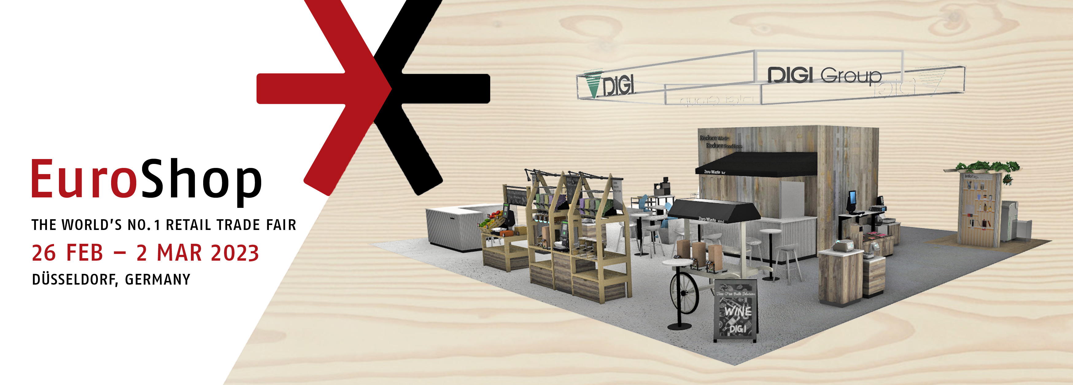DIGI ti aspetta a EuroShop 2023 a Düsseldorf, in Germania, dal 26 febbraio al 2 marzo (Padiglione 5 Stand G45)