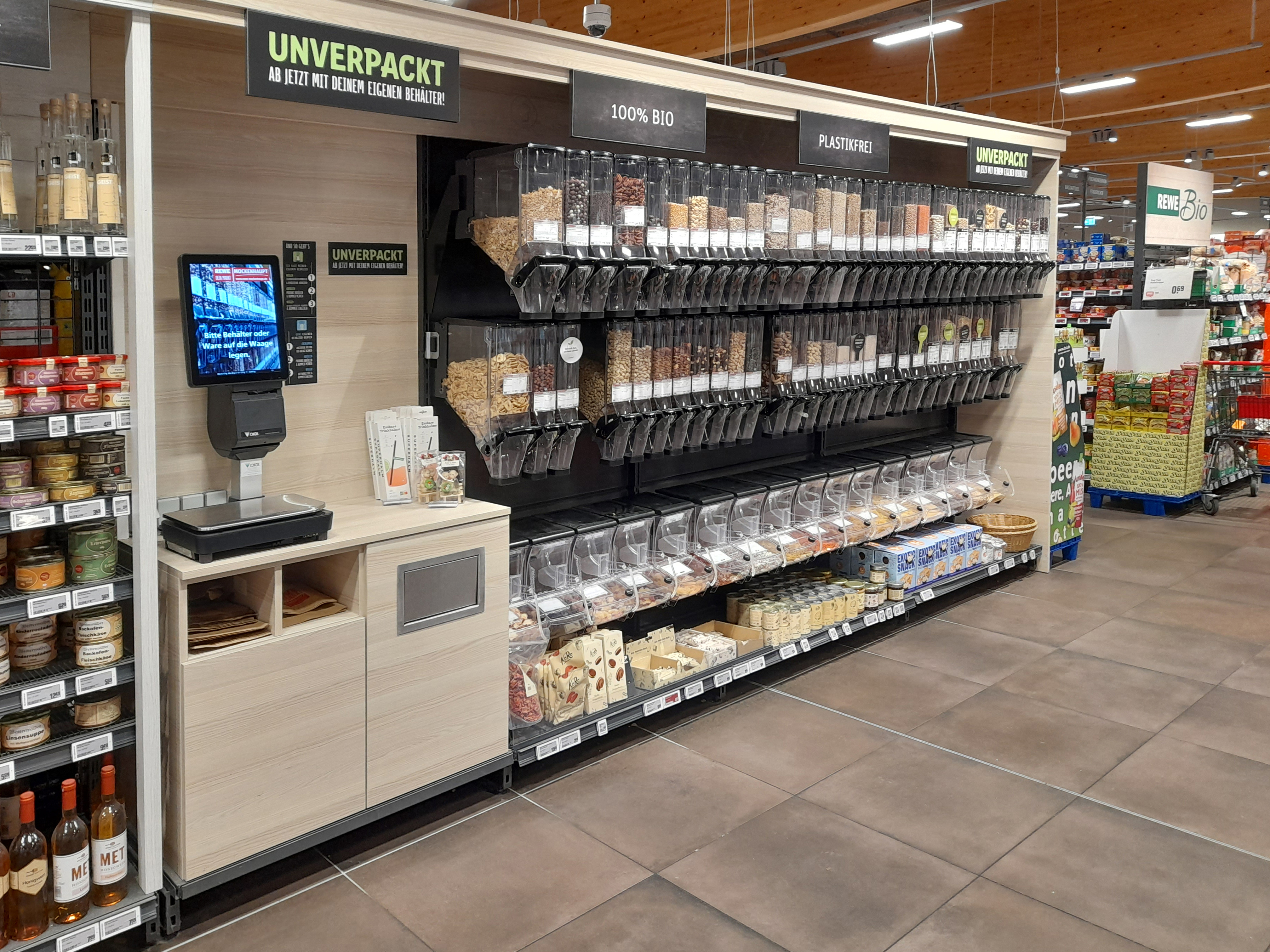 소매In April 2022, the REWE Mockenhaupt store opened in Buchholz (Asbach, Neuwied), built to Green Building standards with a strong sustainability focus. A key feature is the unpackaged goods station, offering about 80 organic items in 60 gravity dispensers and 20 scoop bins, with equipment for using reusable containers.