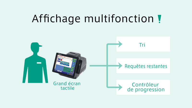 The MVP-3000 sorting terminal is equipped with a large touch panel display and features multiple functions, and can be used to check balances and monitor progress as well as for sorting. It can also be used to keep records of sorting work, helping to reduce waiting time.