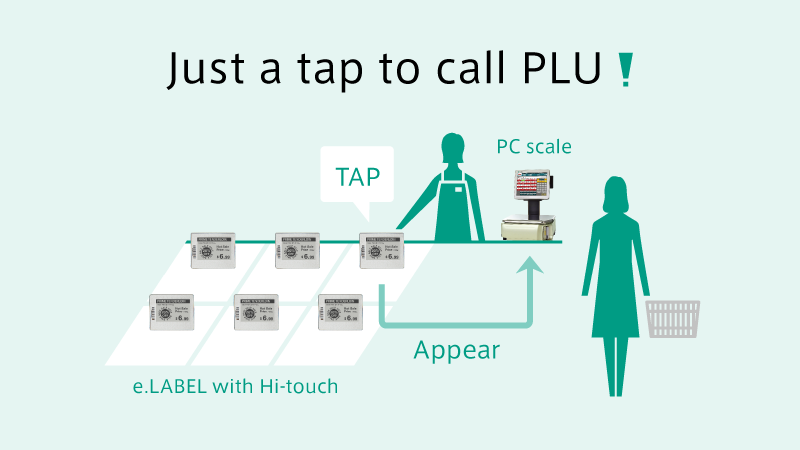 With a tap of the e.LABEL, the PLU appears on the screen of the associated PC scales. This eliminates the need to memorize the PLU numbers and eliminates related errors, thus improving the efficiency of operators, who can now get items correct every time.