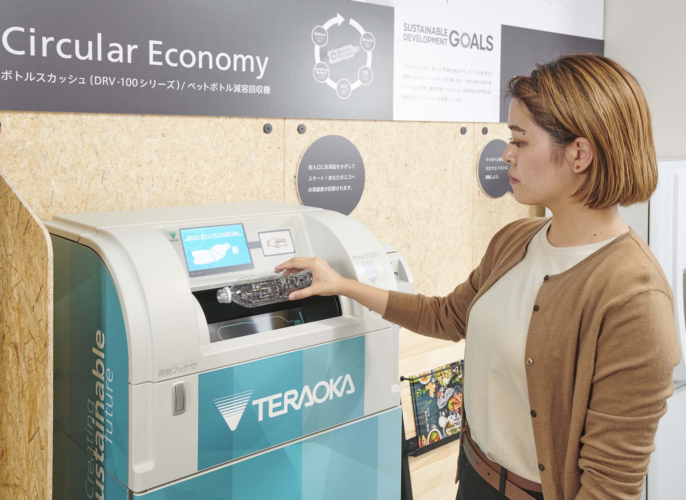 From left: reverse vending machine “Bottle Squash”, pure water vending machine “ECOA OFFICE”