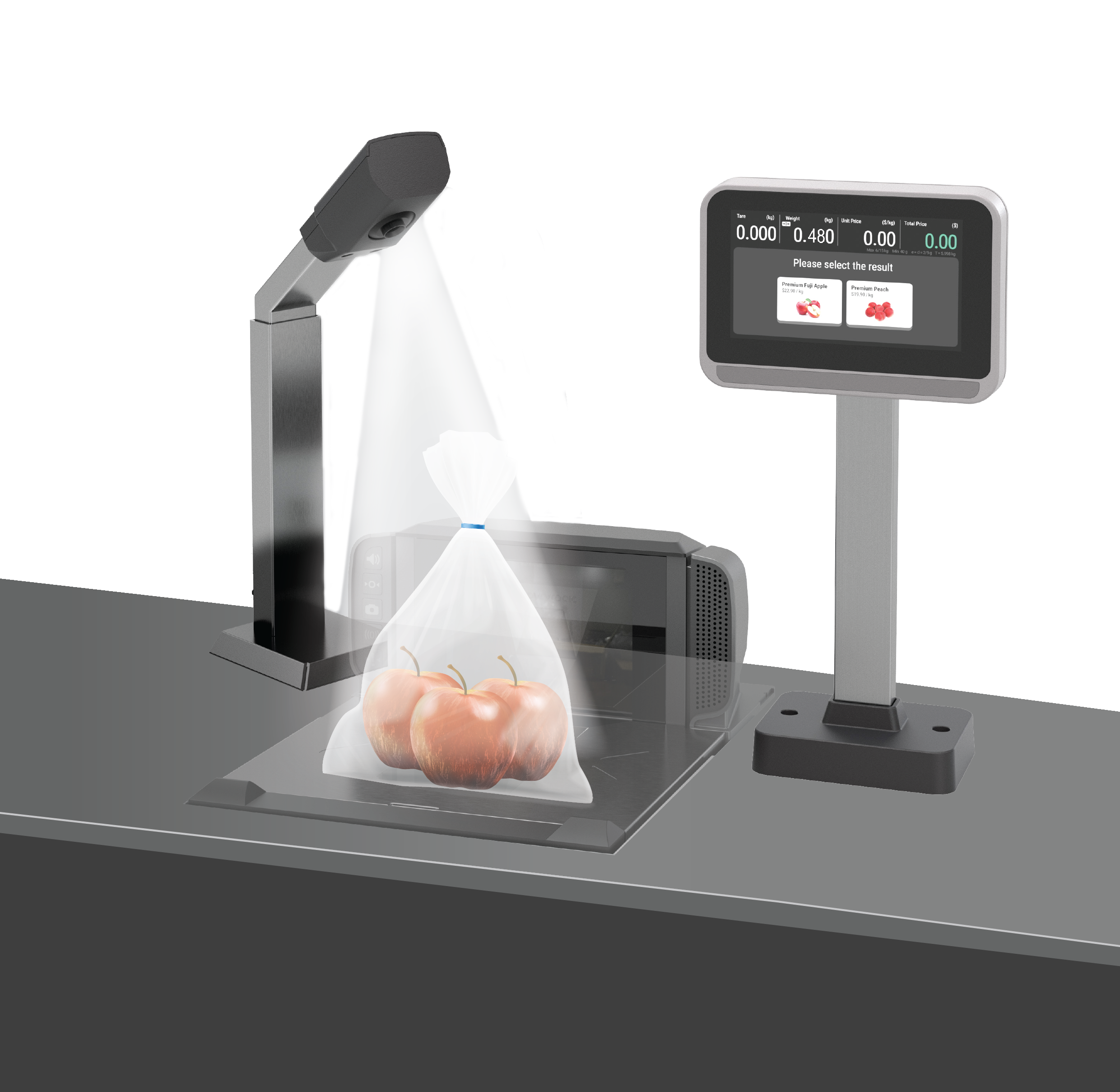 Features a built-in camera that automatically identifies loose and bagged produce, with precision, displaying the best-matched items on-screen in seconds. This innovation reduces errors and shrinkage while delivering a seamless, one-touch shopping experience for customers.