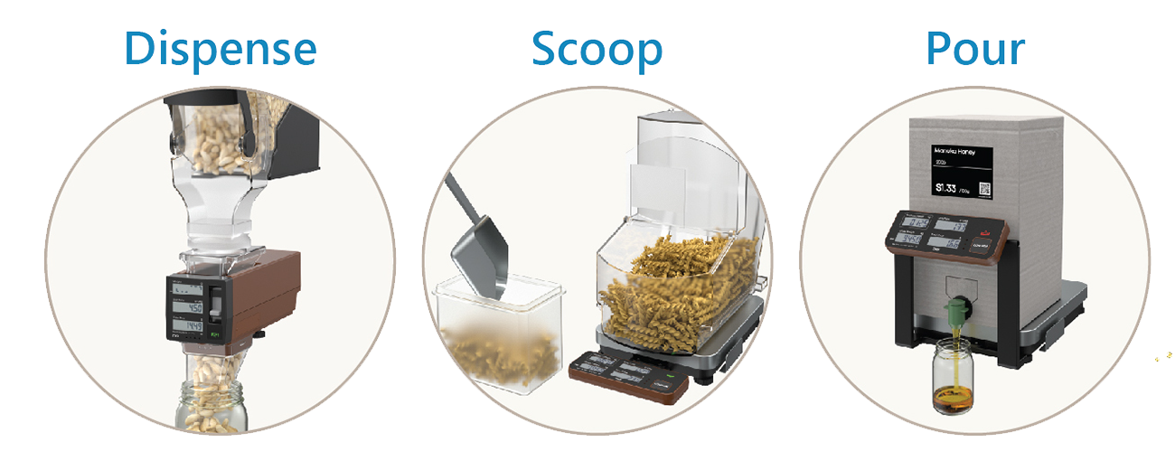 Among this year’s highlights is DIGI’s most innovative solution for zero waste shopping, the All-in-One Bulk System. This solution completely eliminates container tare from the bulk shopping process, and dramatically simplifies product selection by linking dispensers and the label printer console. The system allows the freedom to combine dispensers, scoop bins, and liquid dispensers for a configuration that can be matched to the needs of each retail space.