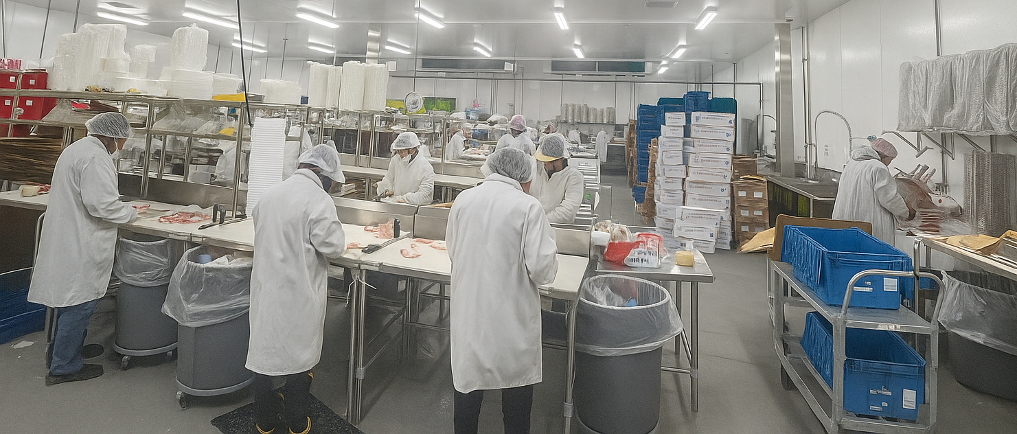 Ayam Yook, located in Moonachie, NJ, is a specialty meat processing and distribution center where they prepare meat products that are cut, weighed, labeled and packed. The company has worked closely with DIGI America for years, operating a wide range of DIGI equipment across their production floor